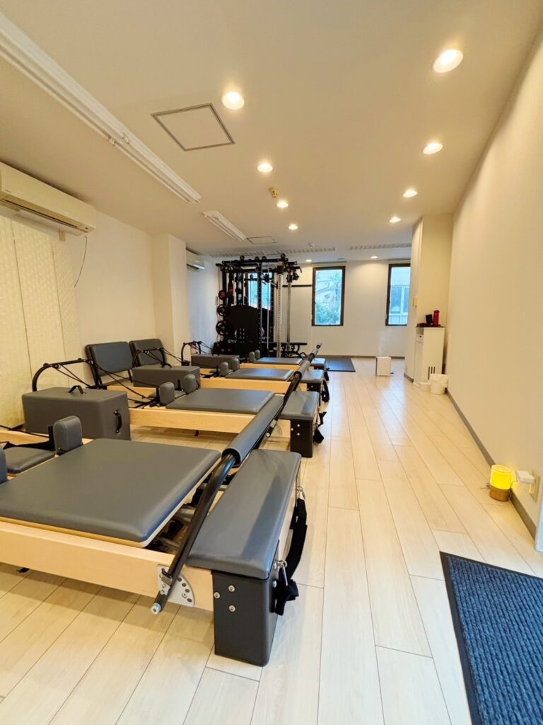 マットピラティスと違い、マシンの抵抗とサポートにより初心者でも正確な動きを習得が可能です。インナーマッスルを効率的に鍛えて姿勢改善、代謝アップ、ボディライン引き締めを実現。怪我のリスクが低く、個人のレベルに合わせて負荷調整できるのが特徴です。