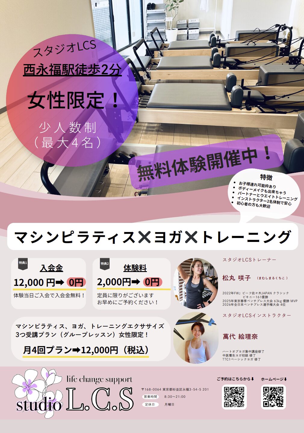 ※トレーニング(パーソナル)はご紹介に限り男性の方も可能です。