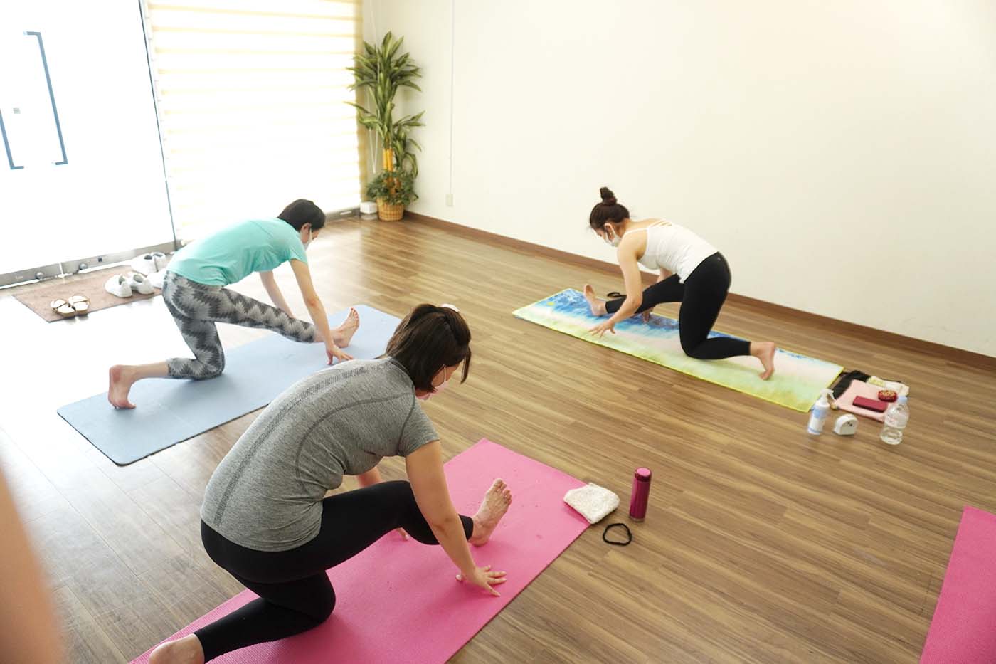 ヨガレッスンと言っても、難しいポーズではなく、誰でもできるポーズからスタート♪