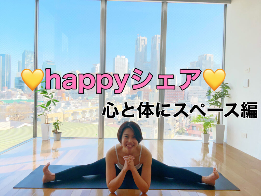💛happyシェア💛 【心と体にスペース編!!】 わたしはいつもレッスン前に happyシェアをお伝えしています✨ happyシェアとは🧐 →毎日が少し幸せになったり 健康になったり 自分を大切にできたりする 内容をシェアしてます... -